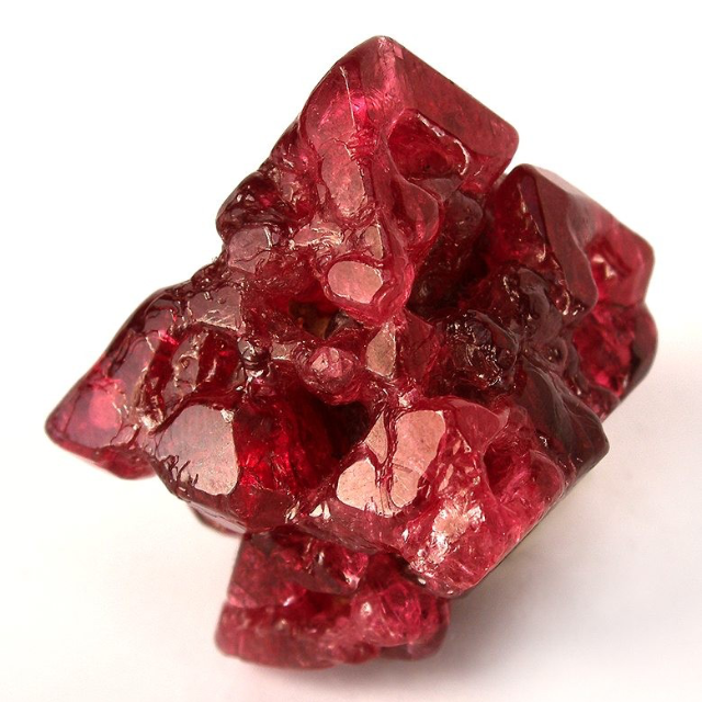 È la più nobile varietà monocristallina dell’ossido di alluminio (Al2O3). La sostituzione di un po’ di alluminio con il cromo lo rende di colore rosso. Se osservati alla luce blu, i rubini birmani e keniani, poveri in ferro, aggiungono alla loro trasparenza intrinseca, una fluorescenza che dà loro un aspetto vivo. Al contrario i rubini di Siam (Tailandia e Cambogia), ricchi in ferro, non fluorescenti, hanno un aspetto più scuro e per questo motivo sono meno apprezzati.
